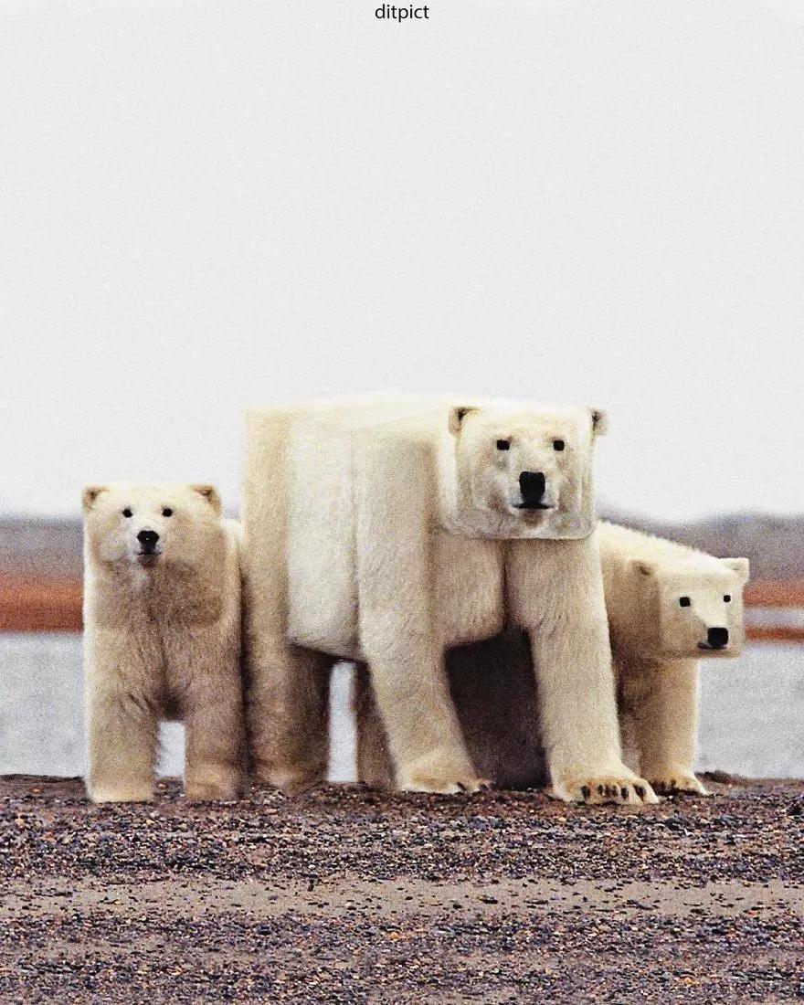 照片素材并不都是阿迪亞親手拍攝,有些是在圖片網(wǎng)站上選取,有些是朋友們拍攝的圖片。在阿迪亞的創(chuàng)作過程中,他主要使用 Photoshop 中的液化工具將這些照片中的動(dòng)物膨脹,并拉抻到自己想要的形狀。
