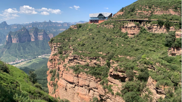 修建在海拔1000米以上的絕壁上,蜿蜒盤(pán)旋于山脊之上,神似游龍,玻璃棧道、石質(zhì)棧道、觀景臺(tái)等一應(yīng)俱全,建成后將成為華北地區(qū)最長(zhǎng)的山脊棧道。景區(qū)開(kāi)放后,游客可登臨棧道,近距離感受大山的雄壯與秀美。因地勢(shì)高,雨后乍晴,常有繚繞的白云沿著山谷升起,沿著站到綿延,行走于棧道之上,如踏云而行,此時(shí)漫步棧道,美哉壯哉,因此有“云端棧道”之美譽(yù)。