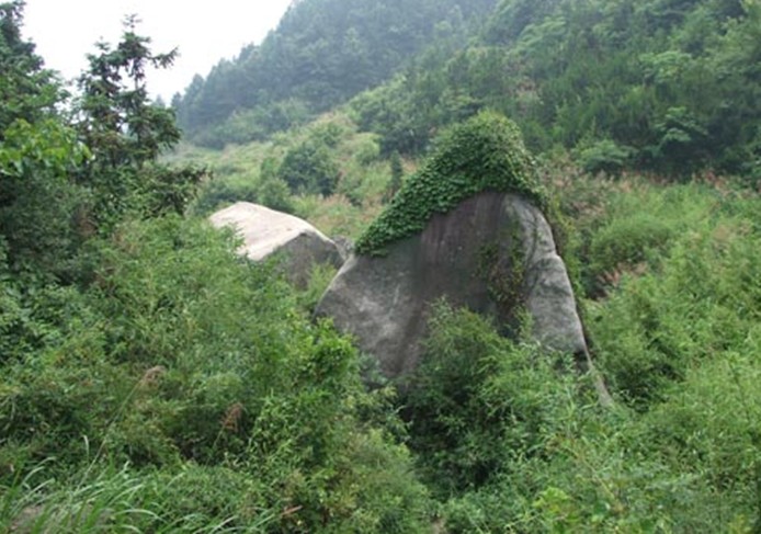 石船或曰船石,在白云崖下澗溝中,石長20余米左右,寬、高均在10米左右,船首、船身、船尾、船倉,輪廓畢具,線條分明;似經(jīng)起重機吊起,有意墊放幾塊小石于其下,淙淙泉水自船底流過,欲濕不濕;船頭高翹,氣宇軒昂;船前溝壑陡落千丈,大有潮生即發(fā),直瀉江河之勢。