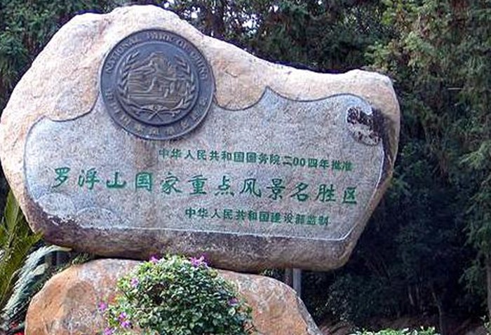 從博羅長寧鎮(zhèn)進入羅浮山,約6公里,便到羅浮山門,朱明洞景區(qū)也從這里起步。門額“羅浮山”為著名書法家秦咢生手書。“羅山萬仞云中起,浮島一峰天外來”的楹聯(lián),形象地概括了羅浮山的氣勢和“浮山嫁羅山的神話故事”。